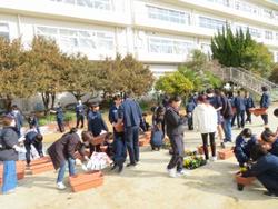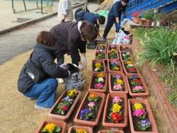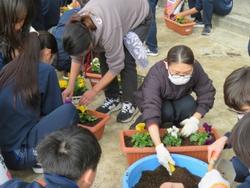 今日は公立高校受検の2日目です。今朝、3年生の担任の先生方は馬橋駅にエールを送りに行きました。きっと最後までやり遂げてくれたことと思います。3年生学校組は、PTA花植えボランティアに参加してプランターにパンジーやジュリアンを植えてくれました。1年生の体育は、サッカーでボールコントロールの練習に楽しく取り組んでいました。