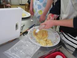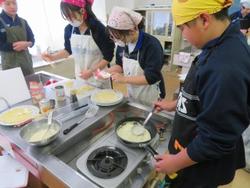 空調工事の途中ですが、今日から体育館が使用できるようになりました。3年生の学年レクでは「猛獣狩り」と「台風の目」。みんなで楽しい時間を過ごせたようです。2年2組の家庭科、クレープづくりはチョコホイップクリームで上手にデコレーションしていました。やっぱりスイーツ作りは嬉しそうですね。