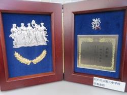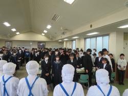 今日、今年度の吹奏楽部の活躍が松戸市議会で表彰され、立派な盾をいただきました。3年生は中学校最後の給食です。今までおいしい給食を作っていただいた池田先生と調理員さんたちに学年全員でお礼の挨拶をしました。こうやって「最後の・・」が増えていきますね。