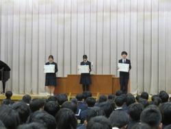 雨が降り、肌寒い一日でした。今日は卒業式の予行練習と表彰を行いました。証書授与など本番を想定し、とても緊張した雰囲気で取り組んでいました。