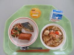 今日は、給食最終日です。みんな具だくさんの田舎うどんを美味しく頂きました。1年間、安心、安全な給食をありがとうございました。