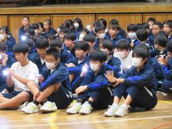 2年生はライトを使った発表の練習。3年生は合唱のパート練習をそれぞれ行いました。