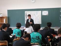 修了式に先立って、1・2年生の表彰報告がありました。多くの生徒が壇上で活動の成果を報告していました。