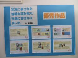 1年生の廊下には、国語科の授業で扱った「写真の情報から物語の創作」の中の優秀作品です。創造力豊かな作品が多く、さすが代表作品の数々です。