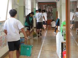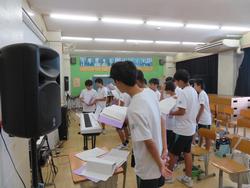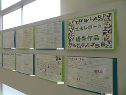また、英語科では夏休みの課題であった「動詞のまとめ」や「動名詞」などの英文法についての優秀作品が1年生の廊下や2年生の階段踊り場に掲示されています。be動詞と一般動詞の違いやhave to、mustについて、色々なイラストを使ったりしてわかりやすくまとめられています。