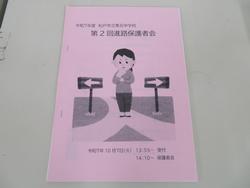 今日は第2回進路保護者会がありました。お集まりいただきました保護者の皆様、お忙しいところ、ご参加いただきましてありがとうございました。3年生にとっては中学校卒業後の進路選択・決定の時期になってきました。今月中旬から始まる三者面談に向けて、今一度、進路先で何をしたいのか?を考えるきっかけとしてください。