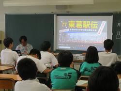 昨日(16日)の帰りの会で、広報メディア部が作成した東葛駅伝の応援ビデオを上映しました。選手の熱いメッセージに教室では自然と拍手があがっていました。