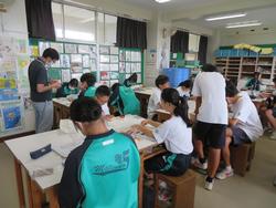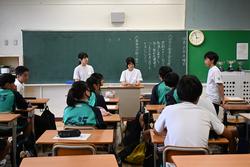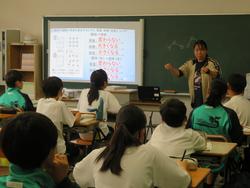 1年生の体育では女子が格技場で、武道の一環として剣道の授業を始めていました。凜々しい姿で竹刀を振っていました。理科では1年生が状態変化、2年生が生き物の身体の仕組み、3年生は力の合成を学んでいました。理科の学習は日常生活と関連させると理解しやすそうですね。