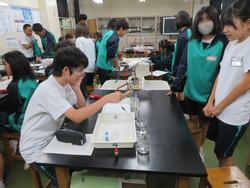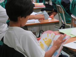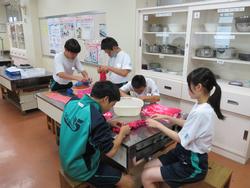 1年生は後期になり、家庭科の授業がスタートしました。ガイダンスを聞きながら、教科書に掲載されている0歳と6歳、15歳のモデルの手形に自分の手のひらを当てて、その小ささや大きさを比べるとともに、友人のそれと比較するなど、人の成長について実感している姿を見かけました。新しい気づきや発見を得られるのが、学校で行う授業の大切な一面ですね。
