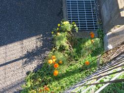 朝晩の冷え込みも本格的になり一段と季節の移り変わりの早さを感じる今日この頃です。先日、校舎まわりを見てみると校庭の木々が紅葉して彩りが豊かに青空の下映えていました。そうした中でも夏?の花のマリーゴールドがアスファルトの隙間から芽を出して花を咲かせているのを見つけました。「ど根性孔雀草(マリーゴールドの和名)」といったところでしょうか・・・。