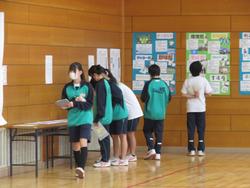 今日は清原祭の予定でしたが、急遽、中止とさせていただきました。合唱発表については、後日、学年ごとによる発表会を予定しております。そのため、本日は、体育館にて展示発表のみを掲示して、学年ごとの観覧の時間を設けました。教科での学習物や8組の製作品、部活動の展示物などは、それぞれが工夫されており、とても見応えがありました。文化の秋を感じさせてくれました。急なお知らせにも関わらずに、御来校いただきました皆様、ありがとうございました。