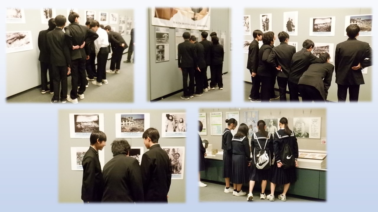 3年生が平和学習の一環で松戸市立博物館企画展に行きました。この企画展では松戸市立博物館に所蔵されている戦争遺品だけでなく長崎原爆資料館所蔵の被爆した遺品も展示されています。昨日の帰りの会では、松戸市平和大使として長崎に派遣された経験のある2年生の生徒、3年生の生徒から「戦争の悲惨さ」や「恒久平和を願う気持ち」について放送を通じて話をしてもらいました。松戸市平和大使として実際に被爆地に出向き、戦争の無残さを見聞きした2人から発せられる言葉は1つ1つがとても重く、話を聞いた3年生は改めて平和の尊さを感じたと思います。今日、展示を見て何を感じ取ったでしょうか。平和を重んじ、戦争を断固として拒絶する価値観を育める機会になればと思います。