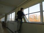 今日は小春日和の穏やかな天気で過ごしやすい一日でした。業者の方が来校して校舎内の窓ガラスの掃除をしていただきました。とても綺麗になった窓ガラスから差し込む日差しはとても綺麗です。ありがとうございました。