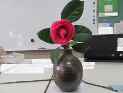 五中の校内教育支援センター(ゆうかり教室)に椿の一輪挿しが生けられていました。校地内の椿が開花していたものだそうです。植物によっても季節を感じることができます。