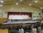 今日は1年生が学年合唱発表会を行い、クラス合唱、学年合唱を披露しました。1年生らしい初々しい歌声を体育館に響かせてくれました。一人一人の声を音程やリズムを合わせて1つの合唱にすることはとても難しかったと思います。お互いのクラスの歌声を聴きあって感じたことをこれからの歌声活動に活かしていきましょう。ご来校された保護者の皆様、お忙しいところありがとうございました。