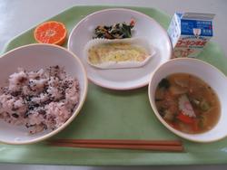 今日は2年生考案のメニュー「HAPPY NEW YEAR! 具だくさんお正月メニュー」です。赤飯、鮭のマヨネーズ焼き、ほうれん草の海苔和え、千葉県の旬の野菜を使ったお雑煮、みかん、牛乳です。新年を迎えるにあたっての元気もりもりの献立で千葉県産の野菜たっぷりのお雑煮は食べ応え抜群でした。3学期も美味しく栄養バランスの整った給食をよろしくお願いします。