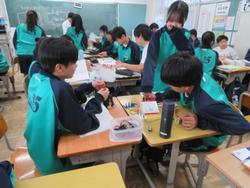 今日は8組が松戸・鎌ケ谷特別支援教育中学校作業学習作品展(鎌ケ谷市役所)に参加してきました。(本日14日~16日の午後3時まで開催しています。)日頃から作業の時間に製作した品々を販売することで生産や販売といった将来の仕事に直結する取り組みです。販売員として接客する姿もとても頼もしく、お客さんへの対応も丁寧でした。