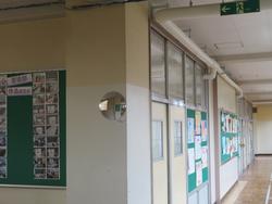 先日2年生の英語の授業でユニバーサルデザインについてのプレゼンテーションがあり、その中で校内にカーブミラーがあると曲がり角でぶつかる危険性が減るとの提案がありました。確かに給食の配膳や片付け時には、自分のトレーをもって移動するため、曲がり角という死角には注意が必要です。