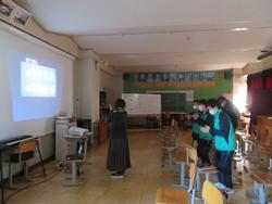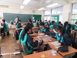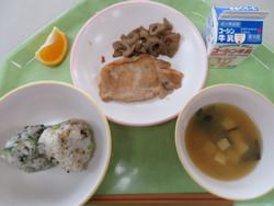 今日の献立は2年生考案の「受験シーズン!縁起物給食」で、おむすび(菜めし、塩昆布と枝豆)、豚肉の生姜焼き、れんこんと人参のきんぴら、豆腐の味噌汁、いよかん、牛乳です。縁起物として、おむすびは「良い結果を結びつける」、昆布からは「よろこぶ」、豚肉の生姜焼きの生姜は「芽が一直線に伸びることから、(豚豚)トントン拍子で目標に一直線」、穴の空いたレンコンは「先を見通し、試験に通る」、豆腐については、「古くから節分と立春に白い物を食べると良いと言われ、特に豆腐は『立春大吉豆腐』として、健康で幸福になるそうです」、いよかんからは「いい予感」など語呂合わせのものもありますが、今まで頑張ってきた成果を発揮するためには、こうした験担ぎも良いと思います。