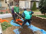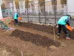 8組は薄曇りの中、作物の収穫や周辺の草抜きを行ったりと夏野菜に向けた畑づくりの作業を頑張りました。
