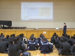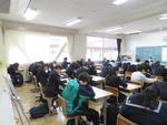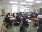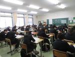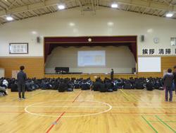 3年生は環境整備や学級活動、家庭科での調理実習などを行い、卒業までの五中生活を楽しんでいました。また、明日の公立高校合格発表にあたり、合同帰りの会を体育館で実施し、進路指導主任の先生からスケジュールや注意点などの話がありました。