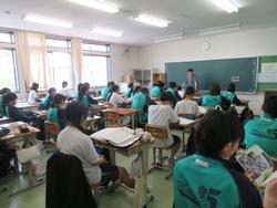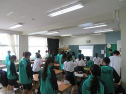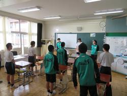 1年生の朝の時間に3年生が校歌指導に来てくれていました。こうやって五中の3本柱が継承されていくのですね。