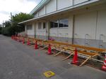 体育館のエアコン設置工事と照明器具のLED化工事が着々と進んでいます。現在、体育館周辺や体育館内部の様子は以下のとおりです。暑い中、工事に携わって頂いている皆様、ありがとうございます。