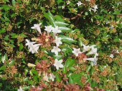 五中敷地内の豊かな自然を紹介します。先日、テニスコート近くに大きなザクロの実を発見しました。成熟すると果皮がはじけて赤く輝く宝石のような実があらわれます。漢字で書くと「柘榴」と書くそうです。また、プールの近くにはアベリアが咲いていました。11月くらいまで花が咲くそうです。花言葉には「謙遜」「強運」などがあり、五中生にぴったりな気がします。