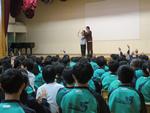 今日はPTAの方々のバックアップで「芸能鑑賞会」(職業人講話!?)がありました。一芸に秀でたプロの方の演技を見聞きした上で、中学生の頃の話や今の仕事を選んだきっかけ、夢に向ってどうしたらよいか?などの話もうかがいました。「人に歴史あり」とはよく言ったもので、それぞれのお話の中から自分自身の生き方のヒントを見つけられた五中生も多いのではないでしょうか。五中PTAの皆様、日頃より生徒、職員のためにご尽力いただきまして、誠にありがとうございます。