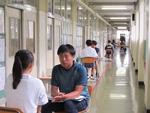 担任の先生が廊下で1人ずつ丁寧に話を聞いていました。
