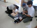 防災の日。生徒の安全と災害への対応に向けて、職員のAED研修を実施しました。八ヶ崎消防署員の方を講師に一次救命処置の流れを再確認し実習を行いました。緊急時の対応と学校生活の安全安心に役立てていきます。