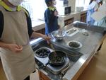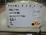 昨日から2学期の給食が始まりました。今学期から食器が新しくなり、軽くて丈夫なので持ち運びも容易で安全です。色もカラフルなので食事の雰囲気も明るくなりました。今日の献立は枝豆ごはん、さばの味噌煮、大根ときゅうりのピリ辛漬け、薩摩汁、梨、牛乳でした。和風の味わいと具だくさんの薩摩汁は栄養も満点でした。栄養士、調理員の皆さん2学期の給食もよろしくお願いいたします。