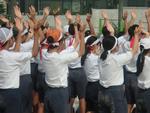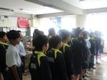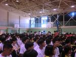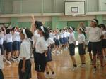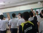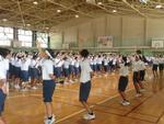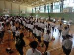 暑さが続いているので練習は熱中症対策として、水分補給や休憩をはさみながらグラウンド、体育館、教室をローテーションしながら午前中に行いました。開閉会式や学年種目、応援練習では体育委員や応援団が中心となって全校生徒をリードしてくれています。今年の体育祭のスローガンは「闘魂」~勝利を胸に燃え続けろ六中魂~。運動公園陸上競技場で開催する予定です。明日も帽子・水筒・タオルを忘れないようにしましょう。