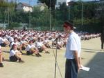長い夏休みも終わり、2学期がスタートしました。今日は、熱中症対策として始業式をリモートにより行いました。各学年代表からは2学期の目標や頑張りたいことを堂々と発表してくれました。また、夏休みの部活動、英語発表会、長崎平和大使派遣等の報告を行いました。2学期は、「実りの秋」を迎えます。この夏の一人一人の努力が実るよう授業や学校行事、諸活動に一生懸命に取り組んでほしいと思います。学校は自分の目標を持ち、その目標の実現に向けて仲間と共に学び、努力する場所です。失敗を恐れず、勇気と自信をもって新しい経験をたくさん積んでいきましょう。充実した2学期になることを期待しています。
