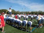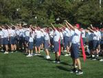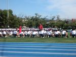 昨日までの暑さが一段落し、涼しい気候となりました。今日は予行練習を運動公園陸上競技場で行いました。競技の方法やルール、係活動の内容、競技場の使用について確認することができました。応援団や体育委員のリーダーシップにより、広々とした競技場で六中生が元気に活動することができました。来週の本番に向けてまた盛り上げていきましょう。