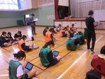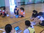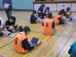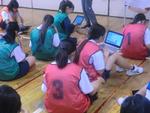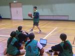 保健体育のバスケットボールの授業では、ジグソー法を用いた授業展開を行っています。班内の役割分担をもったエキスパートが班員へシュートのポイントを伝え、協同して技術アップの要点を確認し合いました。仲間からの説明をもとに、自分なりに技能のポイントをまとめ練習に取り組んでいました。