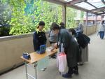 松戸市立総合医療センターのご厚意により、10組のバザーを開催しました。医療センターの入口前ではゴーヤやバジル、おくらなどの野菜販売を行いました。2階フロアでは作業学習で製作したペットボトルホルダー、メモクリップ、ポチ袋などを販売しました。たくさんの方々に購入いただき全て完売となりました。日頃の学習の成果が実を結び、生徒の励みとなりました。ご協力いただきました皆様、松戸市立総合医療センターの皆様に感謝申し上げます。ありがとうございました。