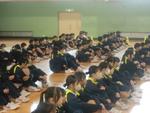 明日は、いよいよ合唱コンクール本番を迎えます。5校時には、800人を超える全校合唱が体育館いっぱいに美しいハーモニーを奏でました。各学級では最後の歌声練習で明日に向けてクラスの思いを一つにしました。明日の合唱コンクールではこれまでの練習の成果を発揮して、クラスの絆を深めましょう。楽しみにしています。