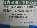 10月27日から11月9日は、「読書週間」です。戦後間もないころから、読書の力によって平和な文化国家を作ろうと全国に広がってきたそうです。本校においても、図書館司書のお力添えで図書室が整備され、たくさんの新刊も並べられています。新聞や図書が豊富に揃っているのでたくさんの生徒が利用しています。今週は図書室と給食のコラボレーションで、「タスキメシ」という物語に出てくるおいしそうな料理が日替わり給食メニューで登場します。楽しみですね。
