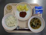 ごはん 鰯ハンバーグ カレーポテト 味噌汁 きな粉豆