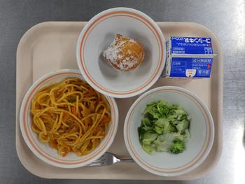 今年も10月は図書委員が選んだ本にのっている料理を給食で提供する「絵本コラボ給食」を実施します。今日はその第1回、「わかったさんのドーナツ」から「レモンドーナツ」です。レモン果汁をたっぷり入れた甘酸っぱいドーナツです。本には材料や作り方がのっています。給食はその作り方を参考にして作りました。ご家庭でもお子さんと一緒に作ってみてはいかがでしょうか。