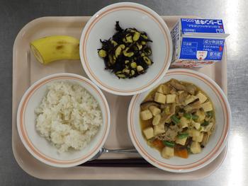 ごはん 肉豆腐 浸し青豆 バナナ 牛乳