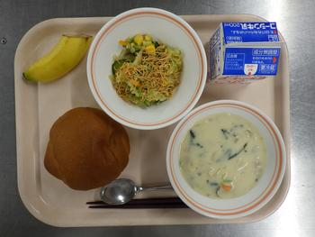 今日はたてわりタイムの日なので時短メニューです。肌寒い日なので、シチューが温かくておいしかったです。「全部好きなメニュー」といっている児童が何人かいました。食べやすメニューのせいか、たてわりで遊ぶのが楽しみなのか、今日はいつに増しても食べ終わるのも、片付けも早くチャイムがなるころにはみんな準備万端でした。