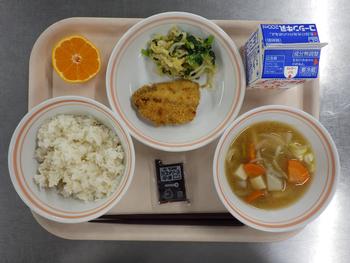 ごはん アジフライ 青菜のごま和え 芋の子汁 みかん 牛乳
