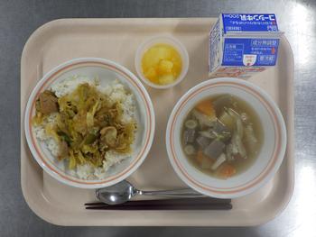 豚味噌丼 けんちん汁 フルーツミックス 牛乳
