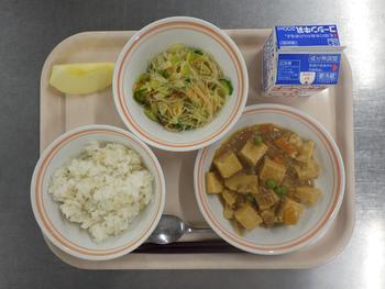 ごはん ジャージャー豆腐 春雨サラダ りんご 牛乳