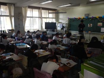 | 今日は、読み聞かせボランティアさん方が来校されて、各教室で本を読んでくださいました。 | |