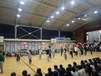 5年生は、6年生の小学校時代に流行した物を紹介しました。 途中、6年生担任がフリースローを行う場面があり、大盛り上がりです! |