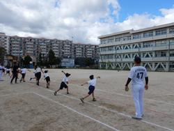 マリーンズ・ベースボールチャレンジという企画に当選したので、本日千葉ロッテマリーンズのコーチが来校し、4年生に野球を教えてくれました。