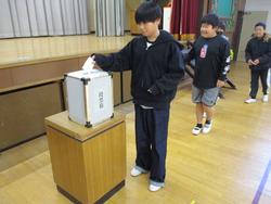 先生から「誰に投票したか言わないこと、○以外のものを書いたら無効になること」など説明をしました。